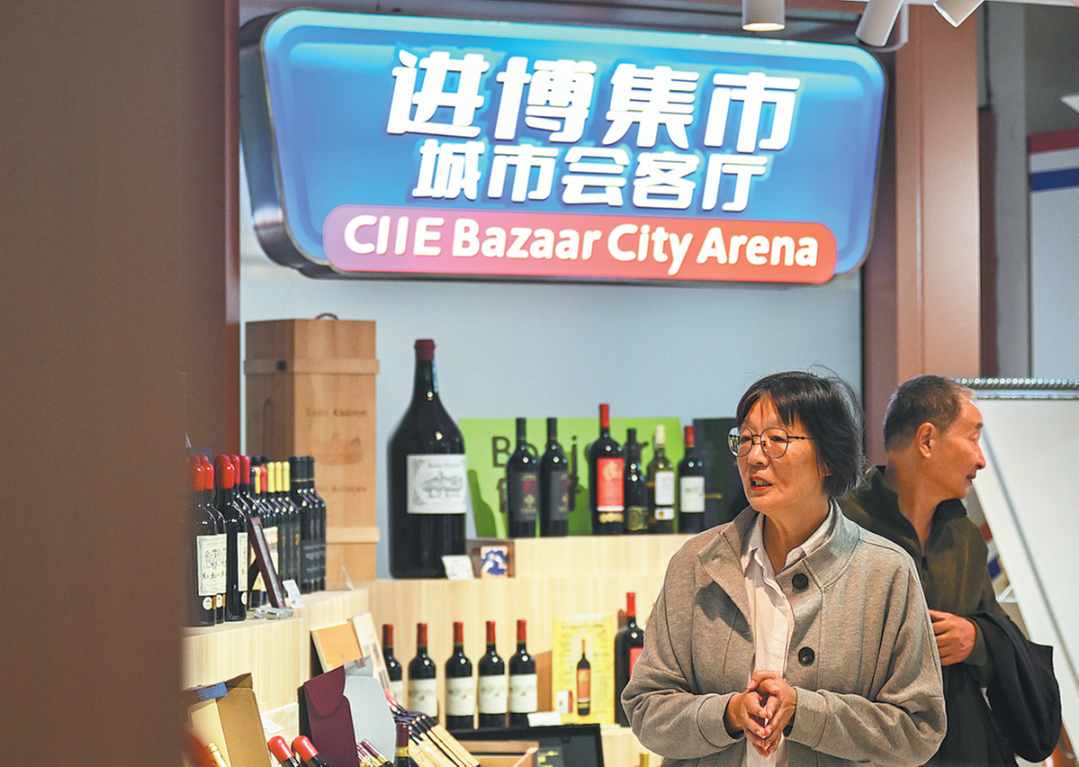 Residents browse a bazaar ahead of the eighth China International Import Expo on East Nanjing Road in Shanghai on Saturday. The CIIE Bazaar City Arena, showcasing a variety of products from the upcoming expo, drew crowds of locals and tourists eager to shop. CHEN HAOMING/XINHUA