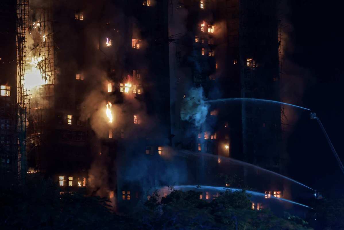 Many residents were reported to be trapped at their homes, with seven out of the total eight buildings of the estate on fire, high flames engulfing bamboo scaffolding and large columns of smoke billowing from the burning buildings.