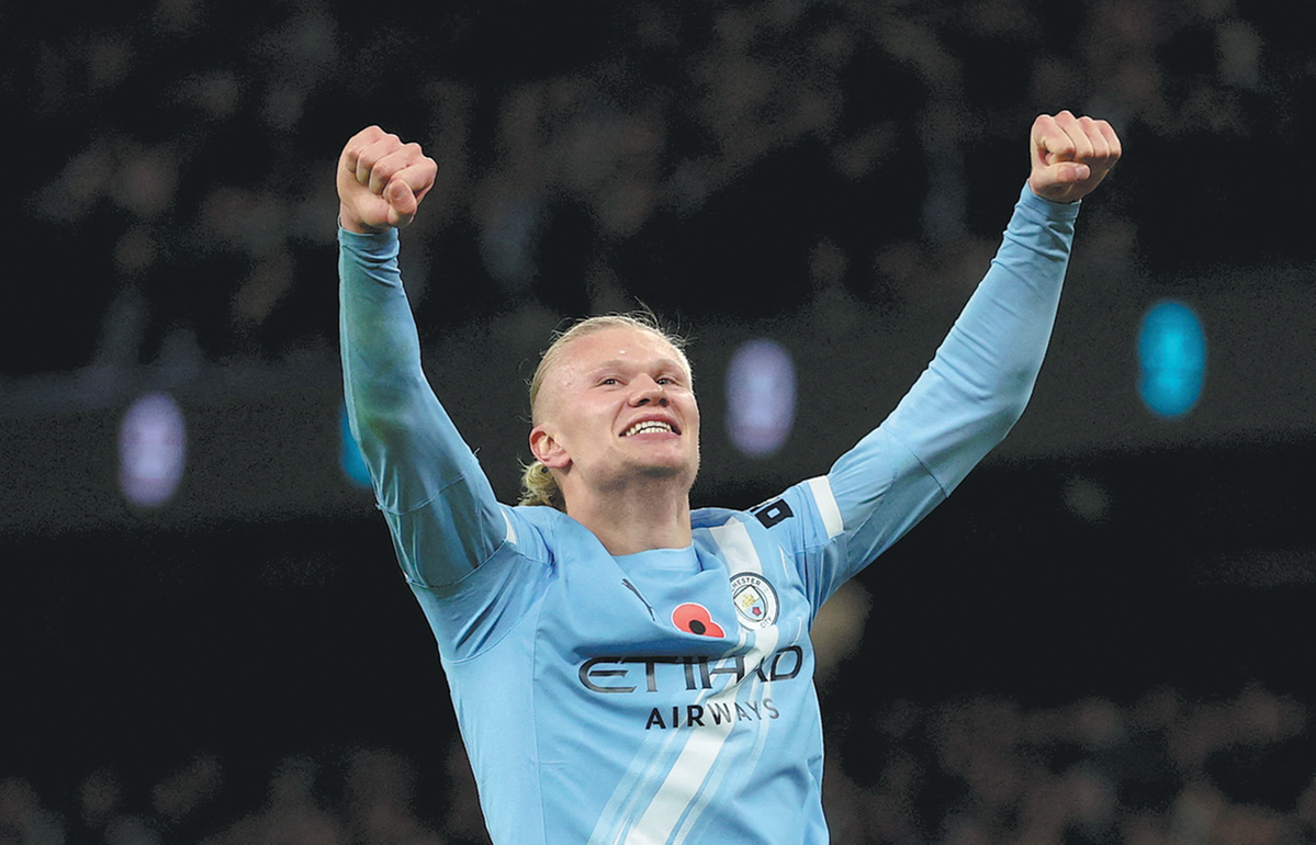 Erling Haaland celebrates scoring Manchester City's second goal during a 3-1 English Premier League victory against Bournemouth at Etihad Stadium in Manchester, England, on Sunday. REUTERS